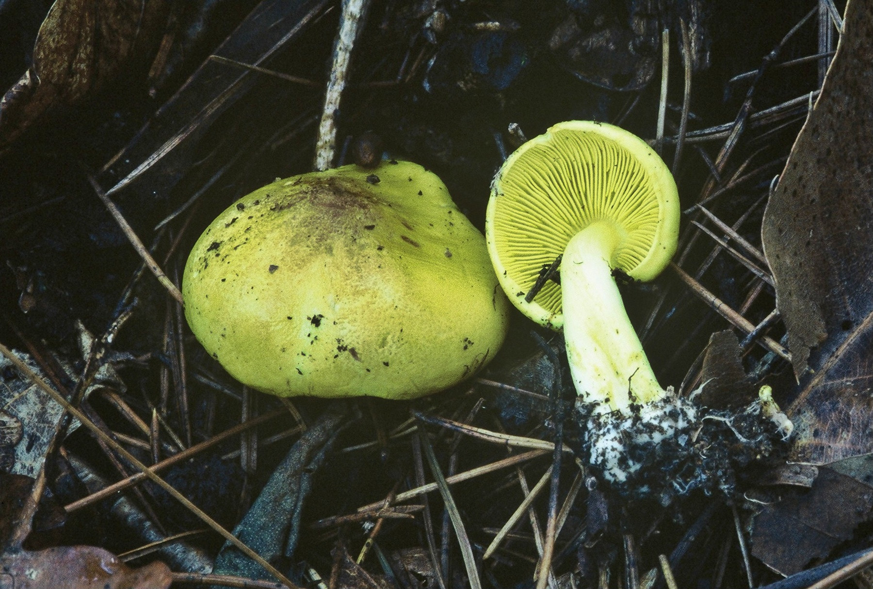 이 중 광비늘주름버섯은 대에 상처를 내면 노란색으로 변하고, 담갈색송이는 갓에 상처를 내면 갈색으로 변하는 특징이 있어 식용 송이와 구분됩니다.