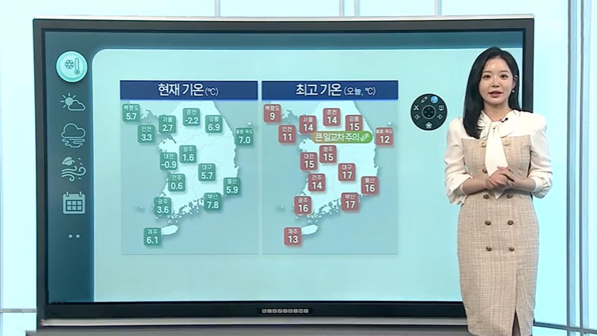 [날씨클릭] 전국 곳곳 아침 영하권…15도 안팎 일교차 주의