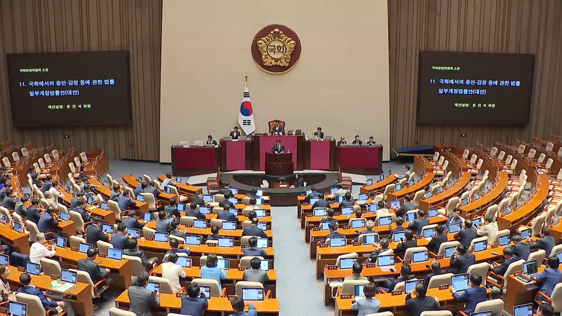 [속보] 국회 '증언·감정법' 개정안, 여당 주도로 본회의 통과