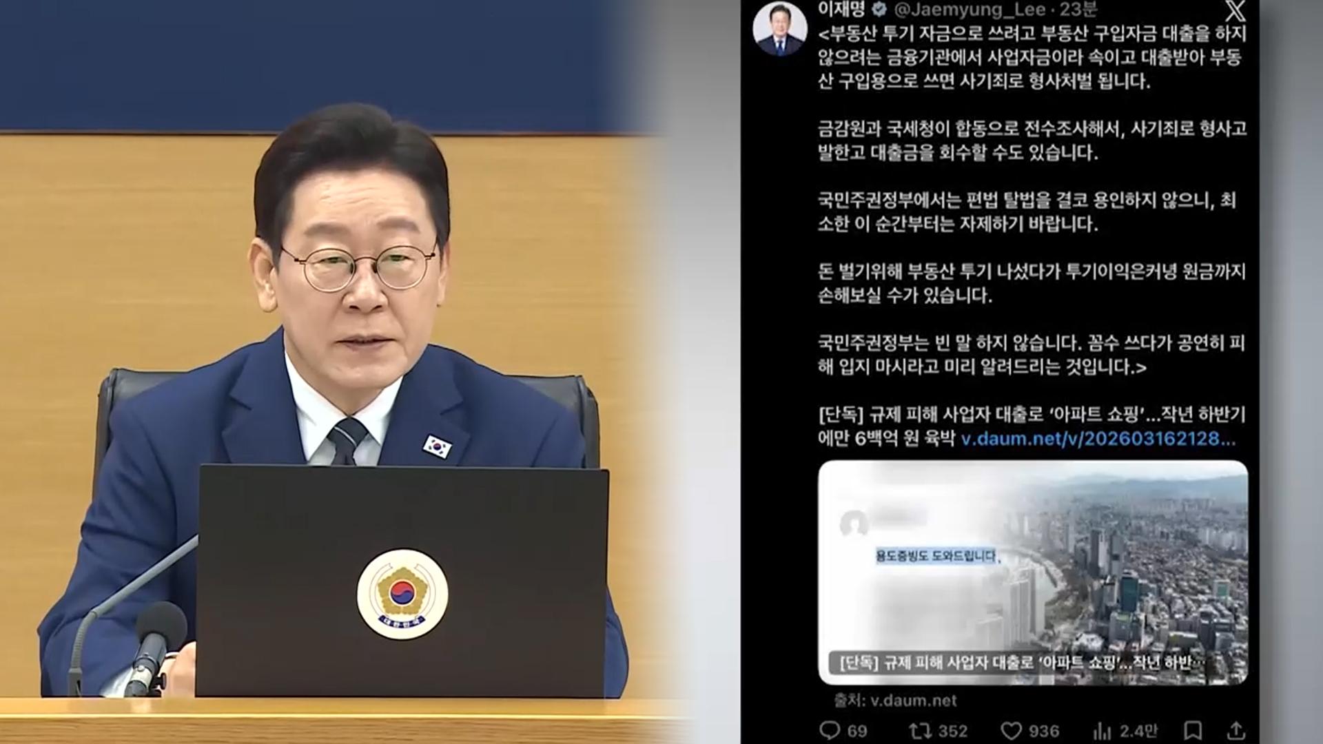이 대통령 "사업자금 대출해 부동산 사면 처벌"