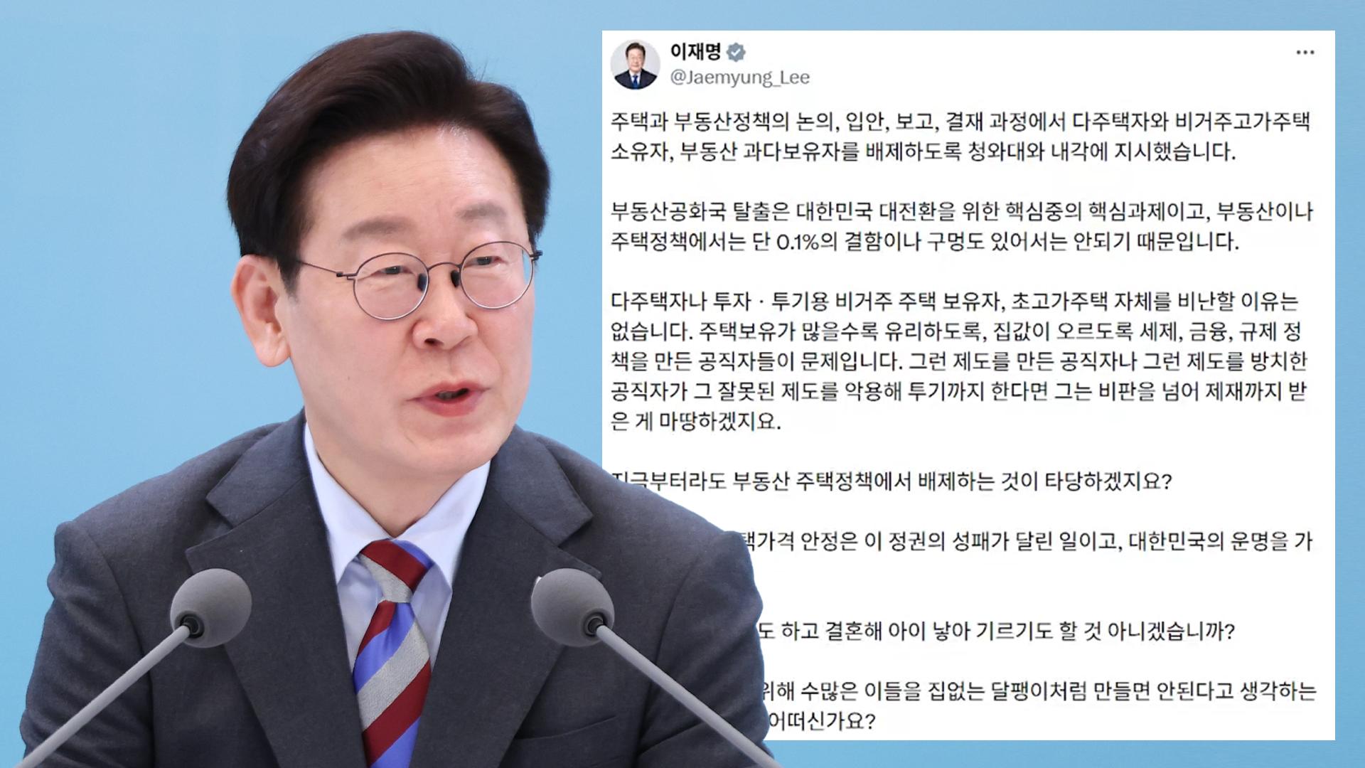 [속보] 이대통령 "부동산정책 입안 등 다주택자 배제"