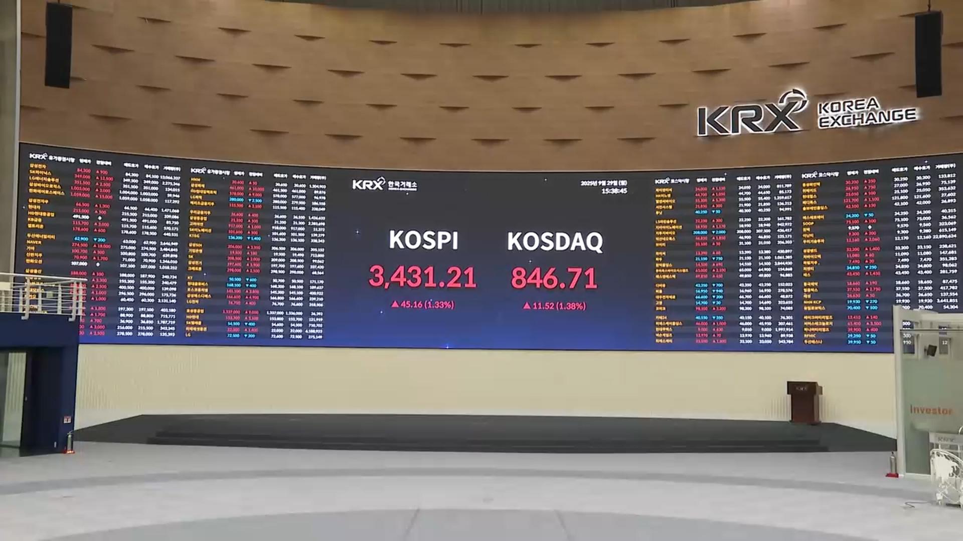 코스피, 반등 성공에 3,430선 회복…환율은 1,400원선 아래로
