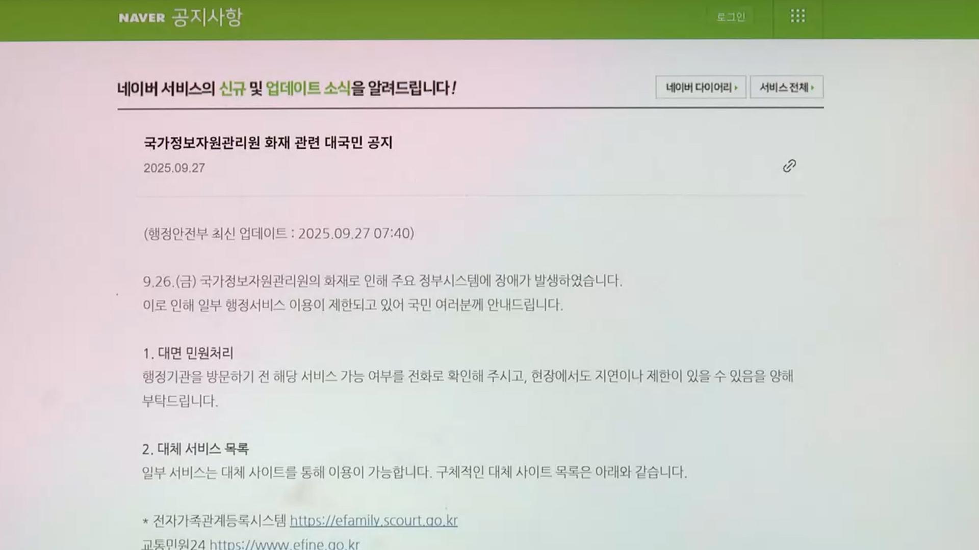정부 전산망 먹통에 네이버가 국민 안내 맡아