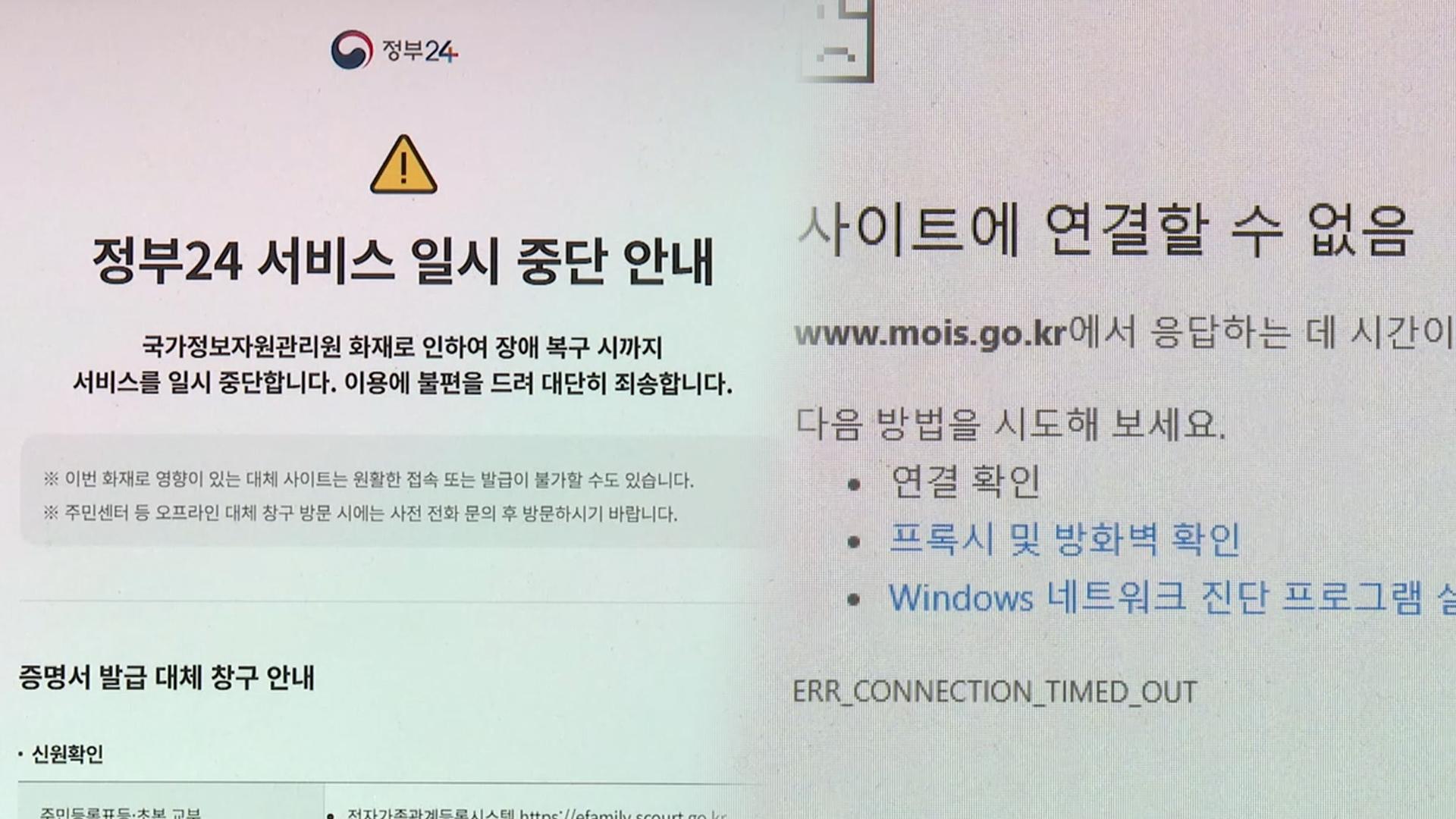 정부24 등 정부 업무 시스템 마비…민원 서비스 중단