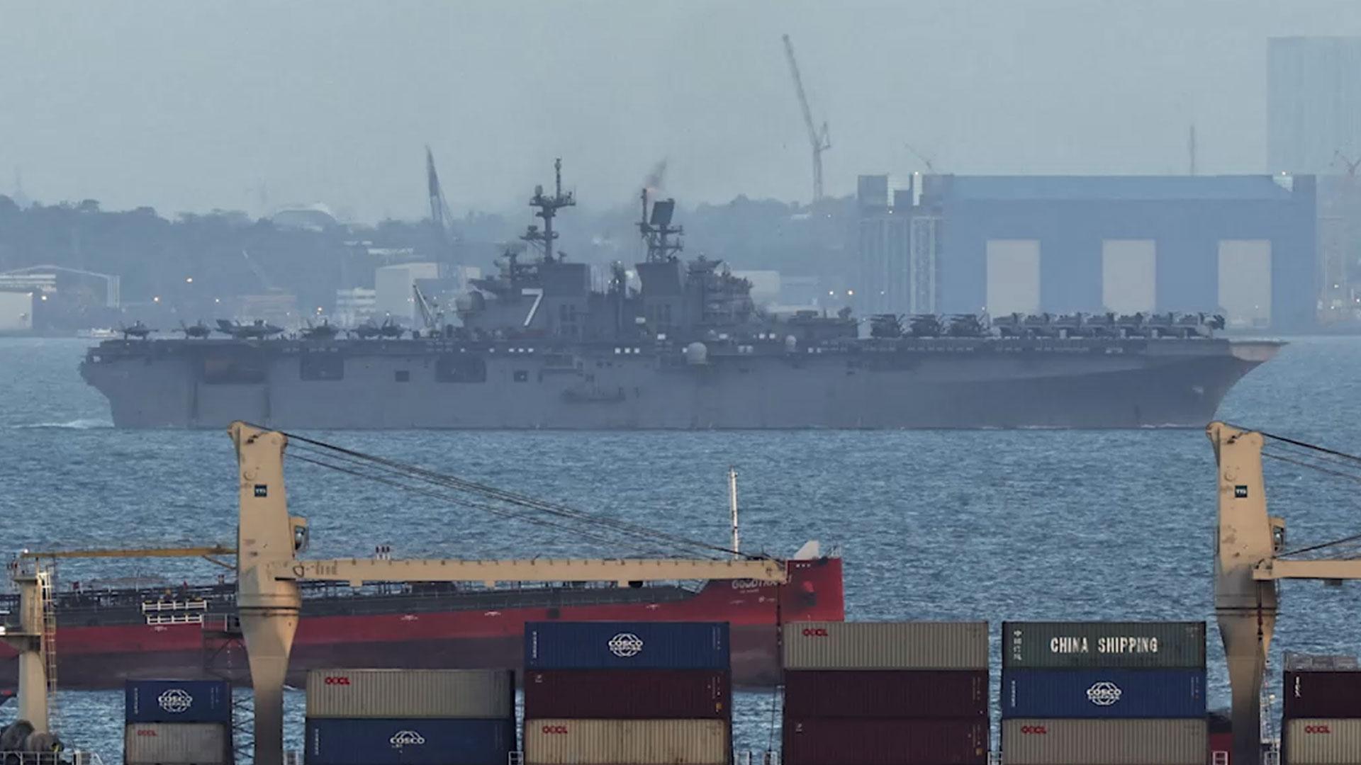 '중동행' 미 해군 군함 싱가포르 인근 항해